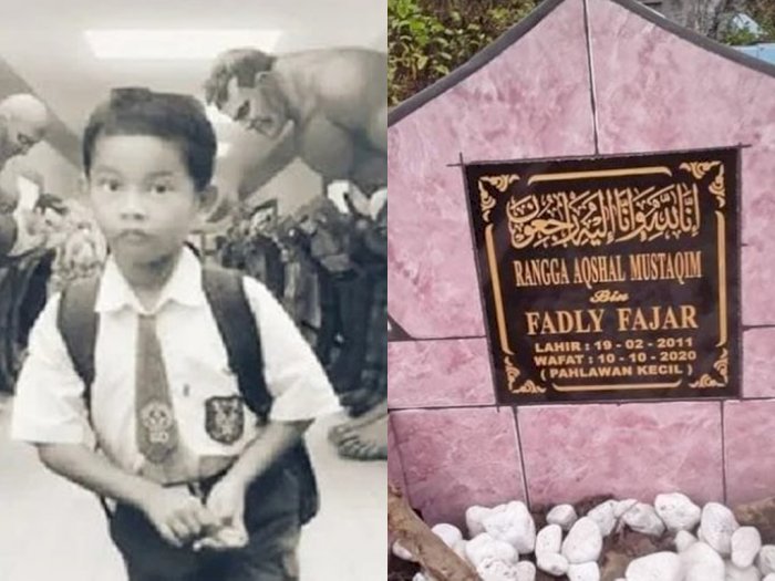 Pada foto tersebut, terlihat makam Rangga sudah dipasangi keramik. Pada nisan itu tertulis kata ‘Pahlawan Kecil’.