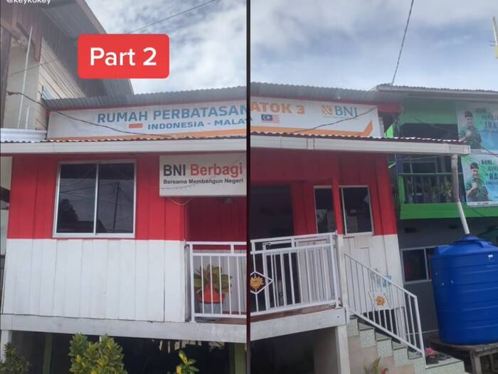 Penampakan rumah tersebut diunggah oleh akun keykokey, Sabtu (17/10) di TikTok yang memperlihat ruangan tamunya berada di Indonesia, serta dapurnya berda di wilayah Malaysia.